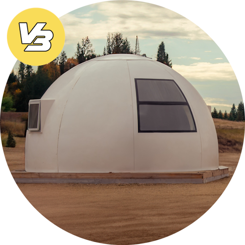 Built for more permanent applications, our Astro Series Version 3.0 has upgraded 2.4″ thick panels that feature improved polyurethane insulation and a revised panel shape that makes assembly even faster. We’ve also improved bolt alignment, the exterior finish, and added gasket seals for even better extreme weather resistance. Made of the same durable high-tech fiberglass composite material as our Mini and Classic Series domes, the Astro Series will last for decades with minimal maintenance and face whatever mother nature throws at it head on. You can go ahead and put it up in places with extreme temperatures or nasty weather without worry. This is the world’s strongest lightweight insulated dome shelter.